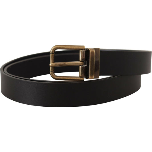 حزام جلدي أسود أنيق مع مشبك عتيق من دولتشي آند غابانا