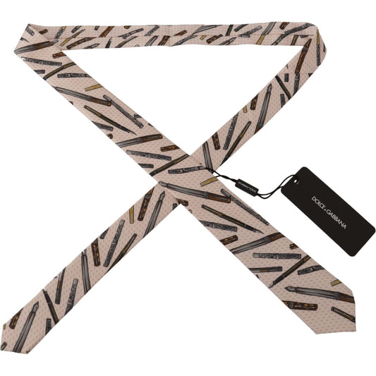 ربطة عنق رجالية أنيقة من الحرير الأبيض من دولتشي آند غابانا