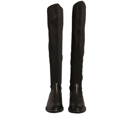 MY TWIN Black Leather Suede Flats High Boots Shoes