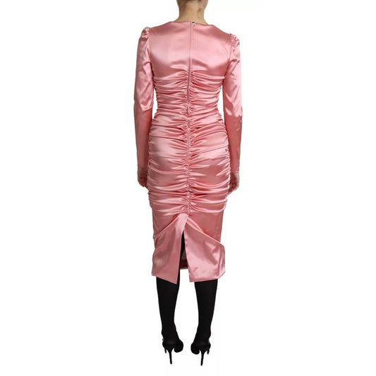 Dolce & Gabbana Pink Long Sleeves Bodycon Sheath Midi Dress