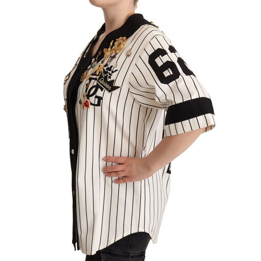 Dolce & Gabbana White Cotton Crystal Charms Amore Shirt