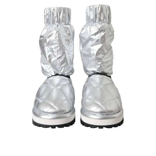 Dolce & Gabbana Metallic Silver Quilted Logo Patch Boot Shoes
