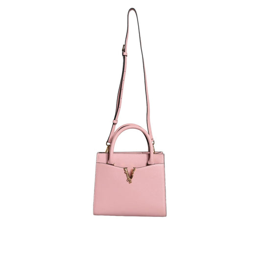 حقيبة كروس بودي صغيرة من فيرساتشي باللون الوردي بمقبض علوي من جلد العجل الحبيبي