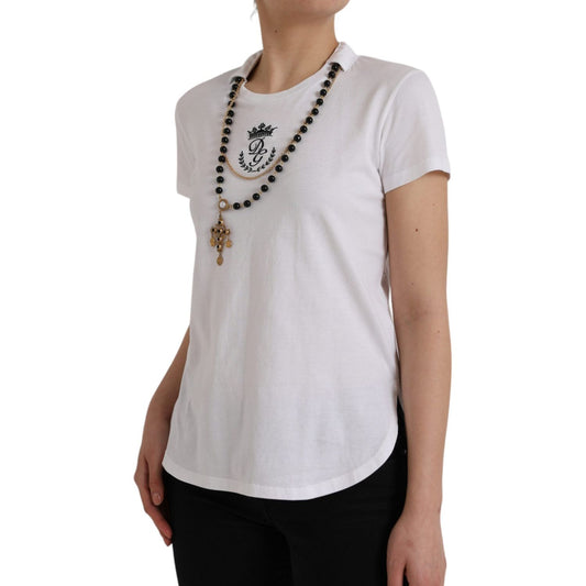 تي شيرت دولتشي آند غابانا قطني أبيض بأكمام قصيرة