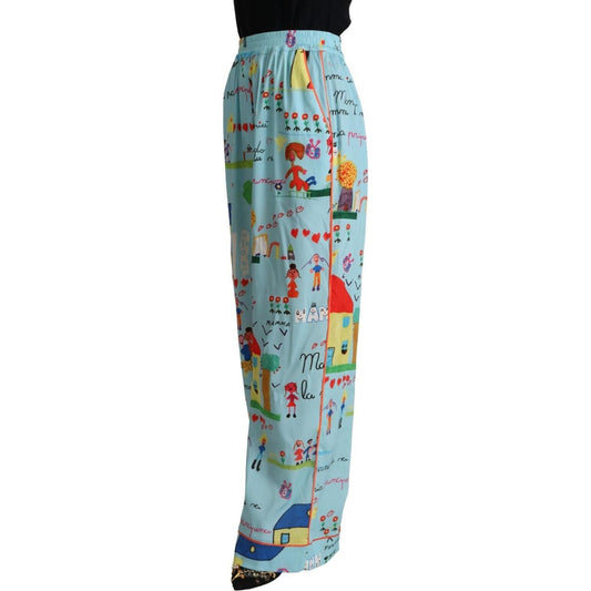 بنطال دولتشي آند غابانا المطبوع الأنيق ذو الساق الواسعة