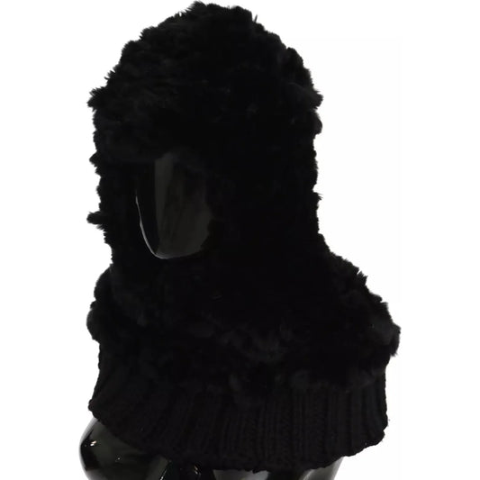 قبعة دولتشي آند غابانا من الفرو الصناعي باللون الأسود لتغطية الرأس بالكامل