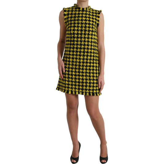 تنورة قصيرة صفراء أنيقة محبوكة بنقشة هاوندستوث من دولتشي آند غابانا