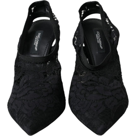 حذاء دولتشي آند غابانا مفتوح من الخلف بكعب مطاطي أسود من الدانتيل