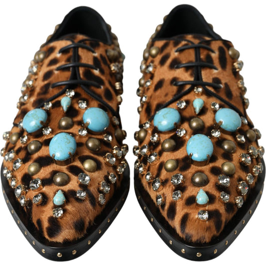 فستان بني من دولتشي آند غابانا بنقشة جلد النمر وكريستال وأحذية بروكي