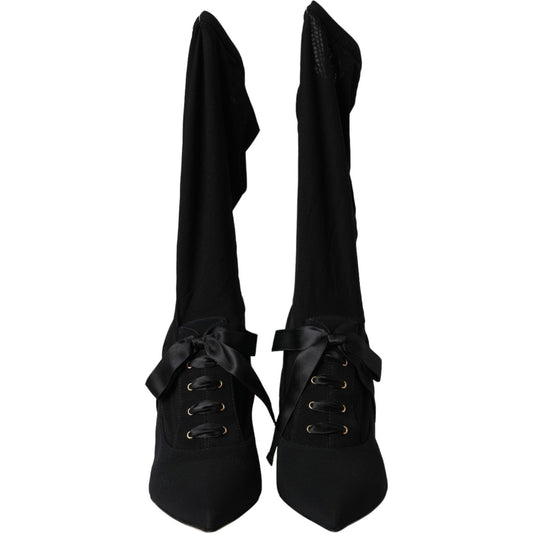 حذاء دولتشي آند غابانا أسود بكعب ستيليتو يصل إلى منتصف الساق