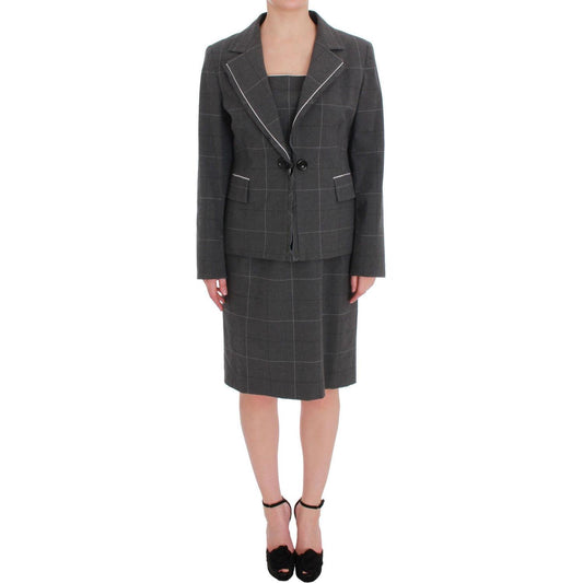 طقم بدلة بليزر وفستان مخطط رمادي أنيق من BENCIVENGA