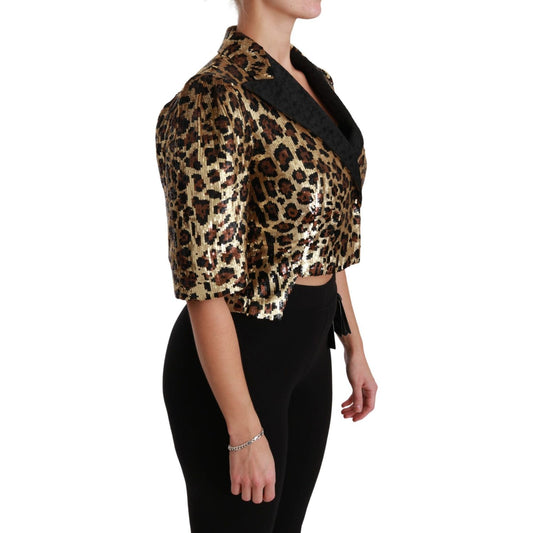 سترة دولتشي آند غابانا ذهبية بطبعة جلد النمر بأكمام قصيرة
