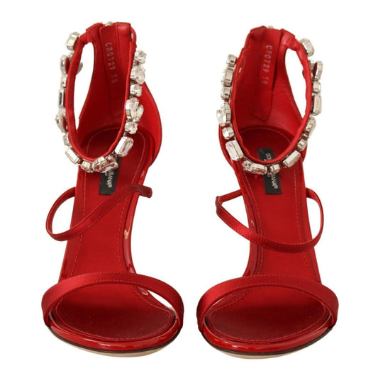 Dolce & Gabbana Red Satin Crystals Keira Sandals Heels Shoes