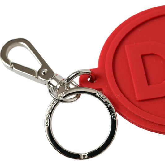 Dolce & Gabbana Red Rubber DG Logo Silver Brass Metal Keyring Keychain
