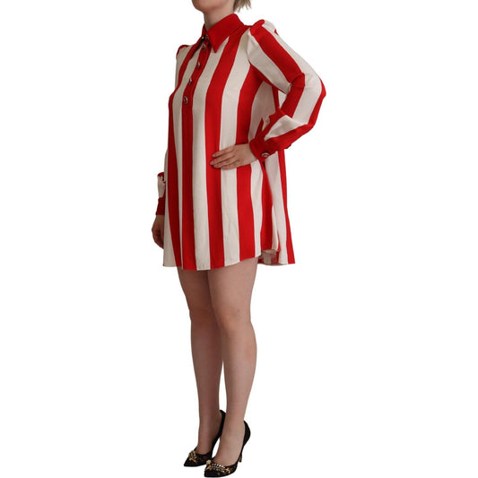 Dolce & Gabbana White Red Stretch Mini Shirt Gown Dress
