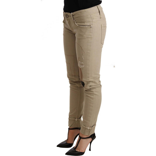 Acht Beige Denim Cotton Bottom Slim Fit Folded Pant