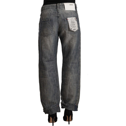 Acht Gray Tattered Cotton Slim Fit Folded Hem Women Denim Jeans