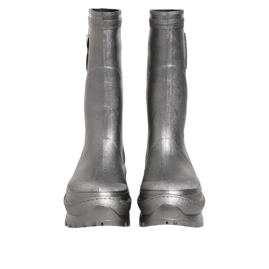 Dolce & Gabbana Metallic Silver Pull On Rain Boots Shoes